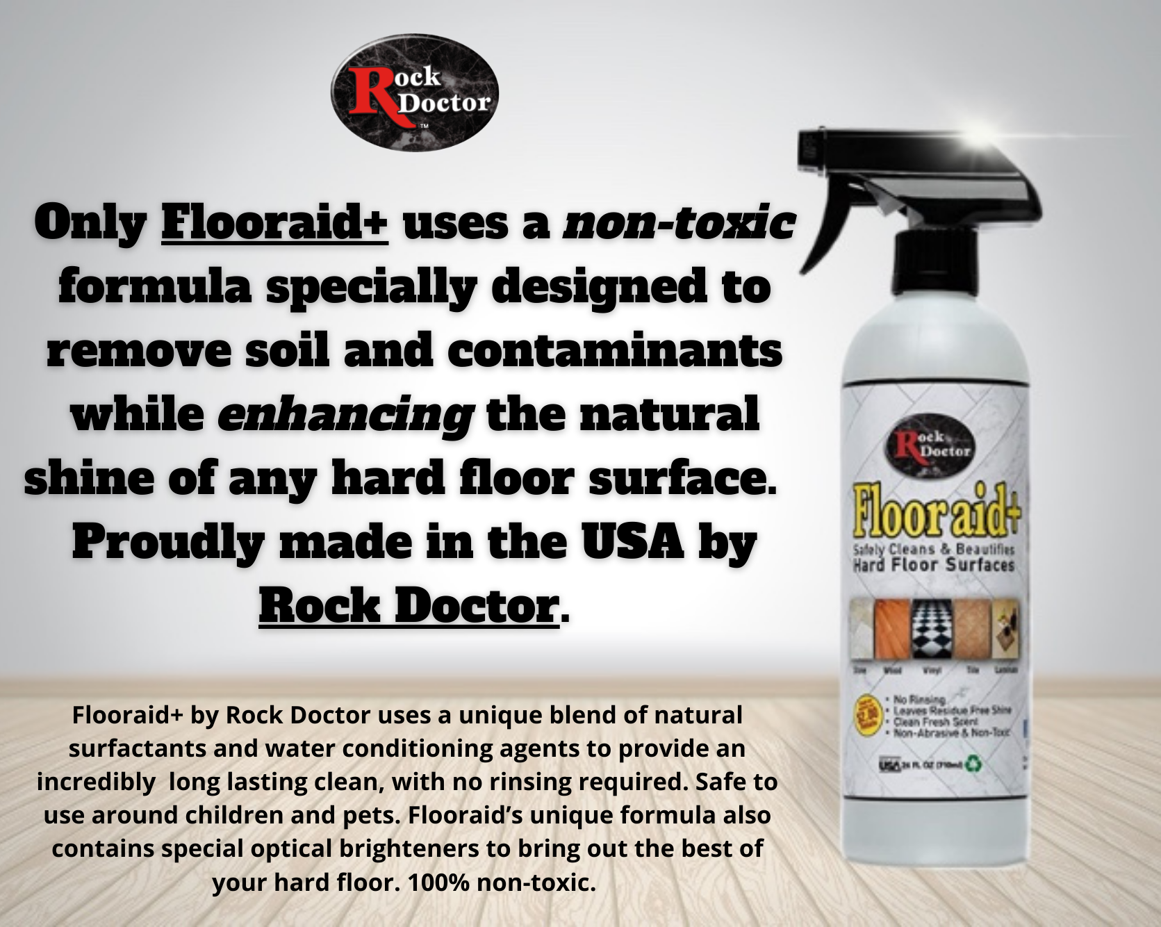 • LEAN & BEAUTIFY FLOORS: Flooraid+ is a non-toxic, environment-friendly multisurface floor cleaner formulated to remove grease, dirt, oil and more from stone to hardwood floors, laminate, ceramic tile and vinyl floors. Flooraid+ is even safe on natural stone and will not dull or etch the surface.