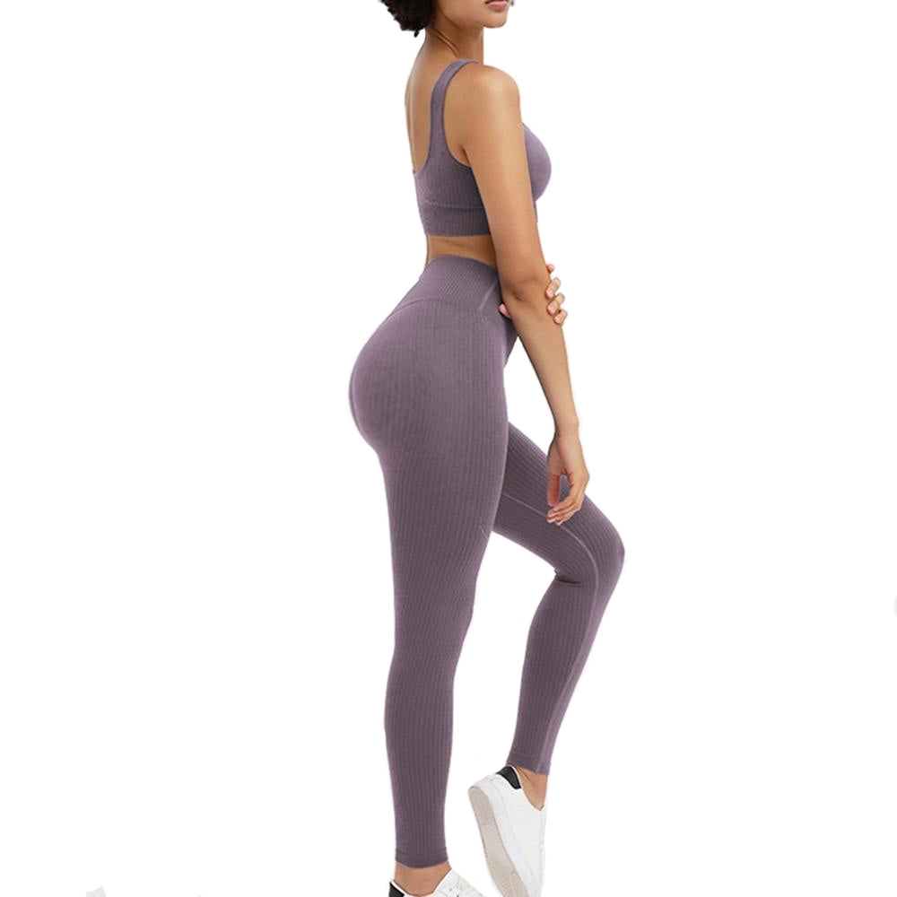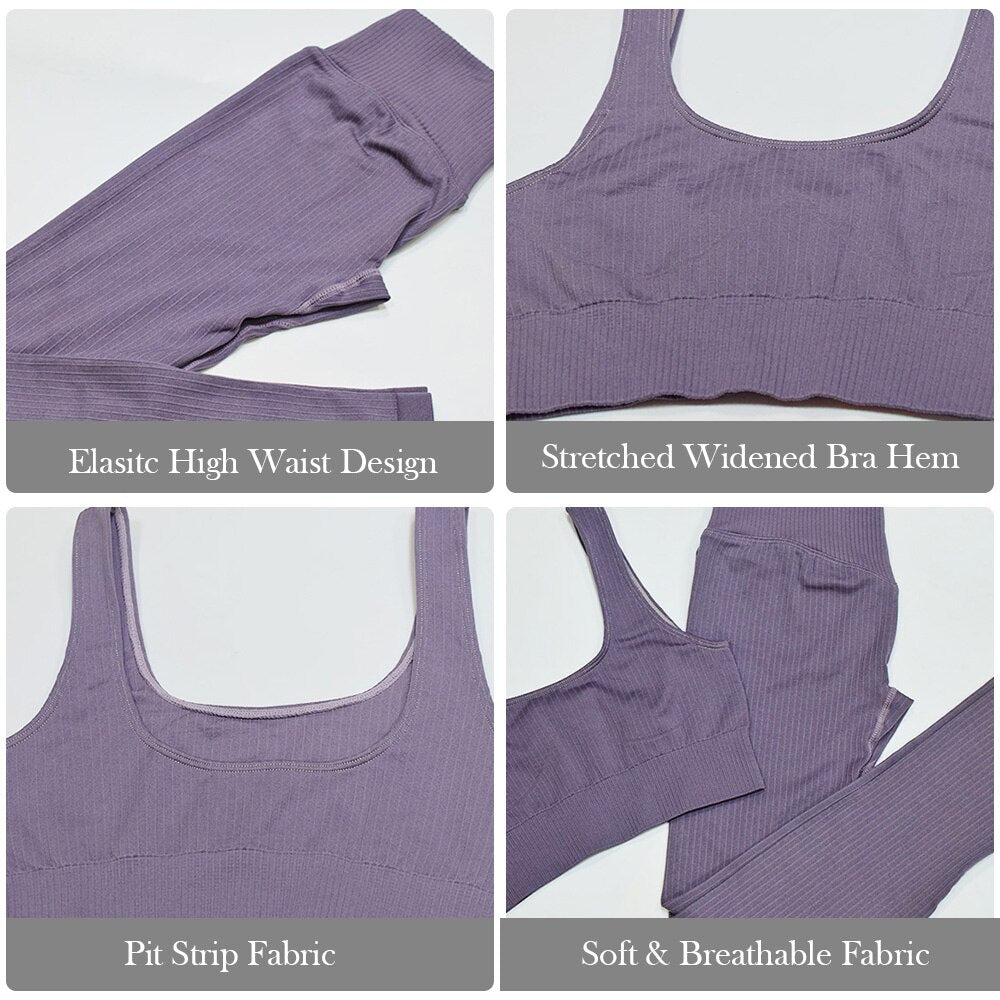 Features: Ladies Seamless Sports Suit Solid Color Quick-drying Yoga Wear High Waist Buttocks Tight Elasticity Fitness Clothes