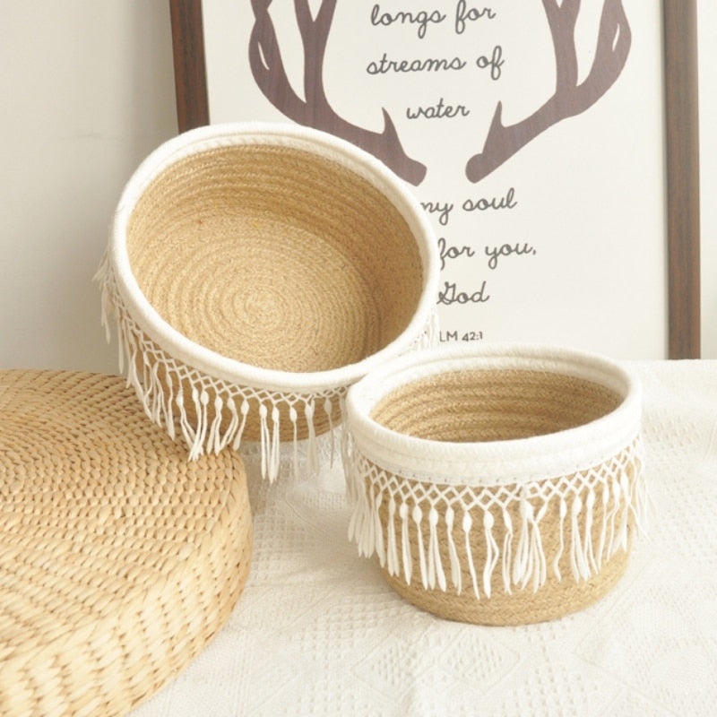 Cotton Rope Woven Storage Basket Bedside Tabletop Snacks Debris Basket Desktop Sundries Cotton Storage Box.