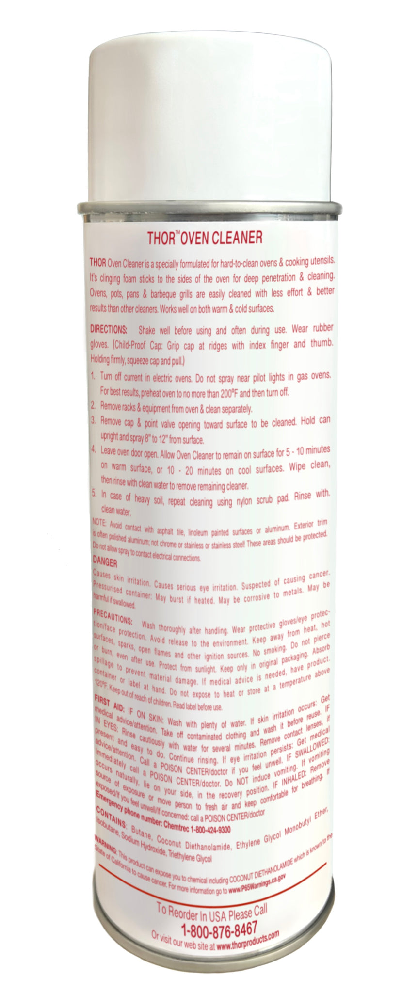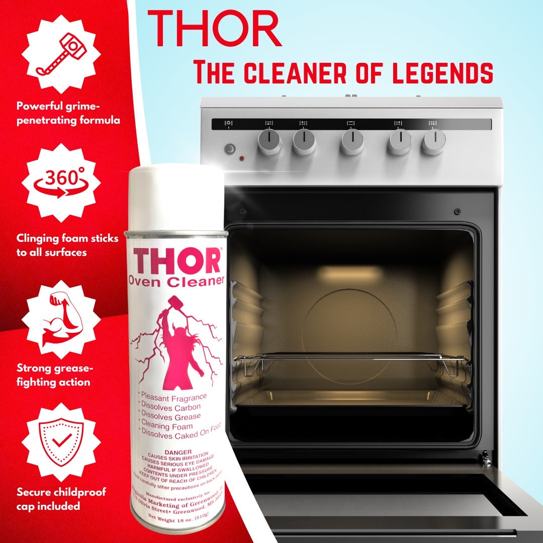 Who has time to give their oven a professional clean? Not many of us! By the time we get around to it, the oven is in such a bad shape it is well beyond an easy job! Thor Oven Cleaner is specifically formulated to be the first and last cleaner you’ll need for those hard-to-clean and dirty ovens and cooking utensils. The easy to use aerosol-can design dispenses a foam that sticks to all of the interior sides of the oven for a deep, amazing clean! With minimal muscle and elbow grease, this cleaner is designed to dissolve carbon, grease and even caked-on food on both warm and cold surfaces. With this hard-working cleaner, you can be confident that you can more easily clean your ovens, pots, pans, gas or electric cooktops, fryers, stove-tops, toasters and non-porcelain grills with less effort and impressive results!